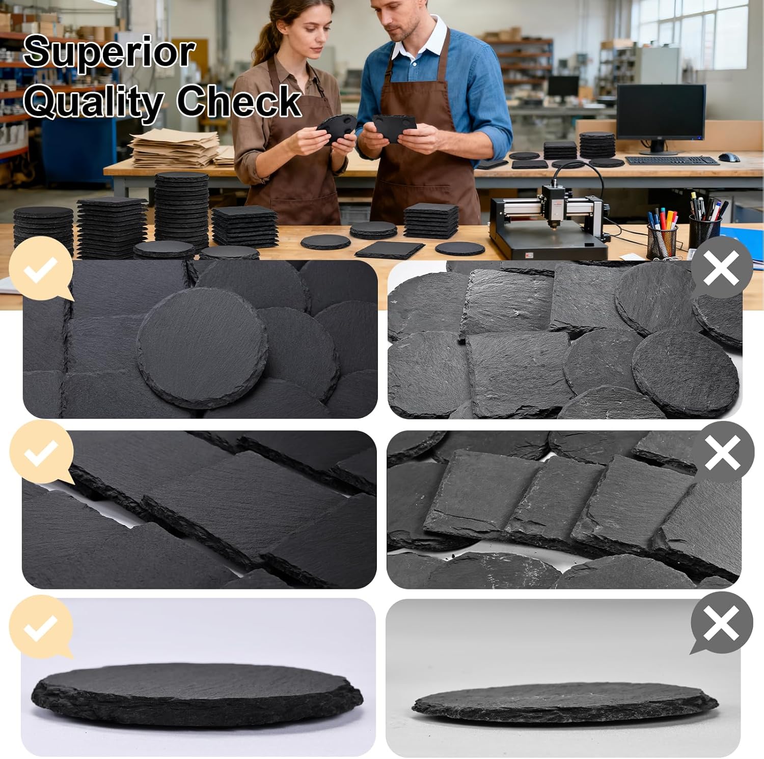 Customers find these slate coasters to be high-quality and excellent for laser engraving, working well with diode lasers. The coasters receive positive feedback for their appearance and value for money. Customers disagree on the coasters’ durability, thickness, and size.