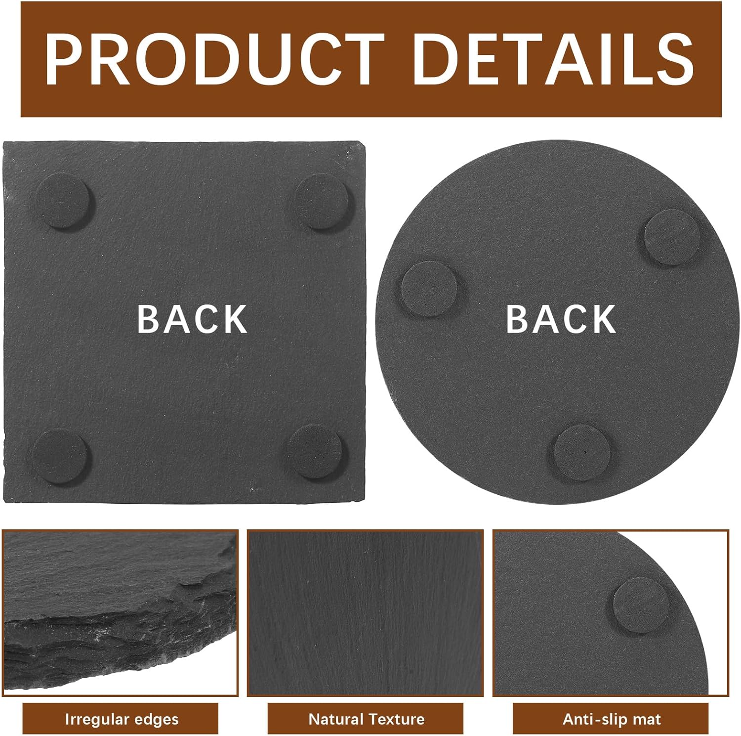 Natural material, each one is unique Using selected natural slate material, retaining the natural texture and color, each coaster is a unique individual, showing texture and durability, with both natural beauty and solid feel