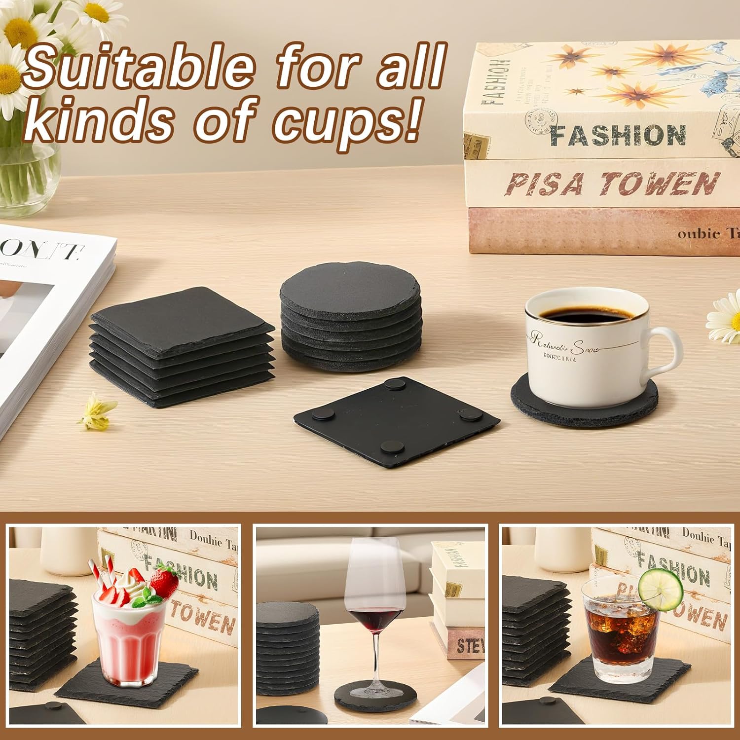 Easy to clean and maintain, suitable for a wide range of scenarios Supports wet cloth wiping and water washing, easy and quick cleaning, 4-inch square design is suitable for most cups, whether it is a coffee cup, glass or mug, it can be placed securely, suitable for daily family life, party gatherings, office rest and other scenarios
