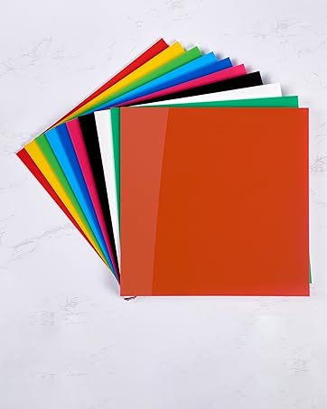 Cast acrylic plexiglass square in 10 colors (orange, red, rose red, yellow, green, light green, blue, lake blue, black, and white)