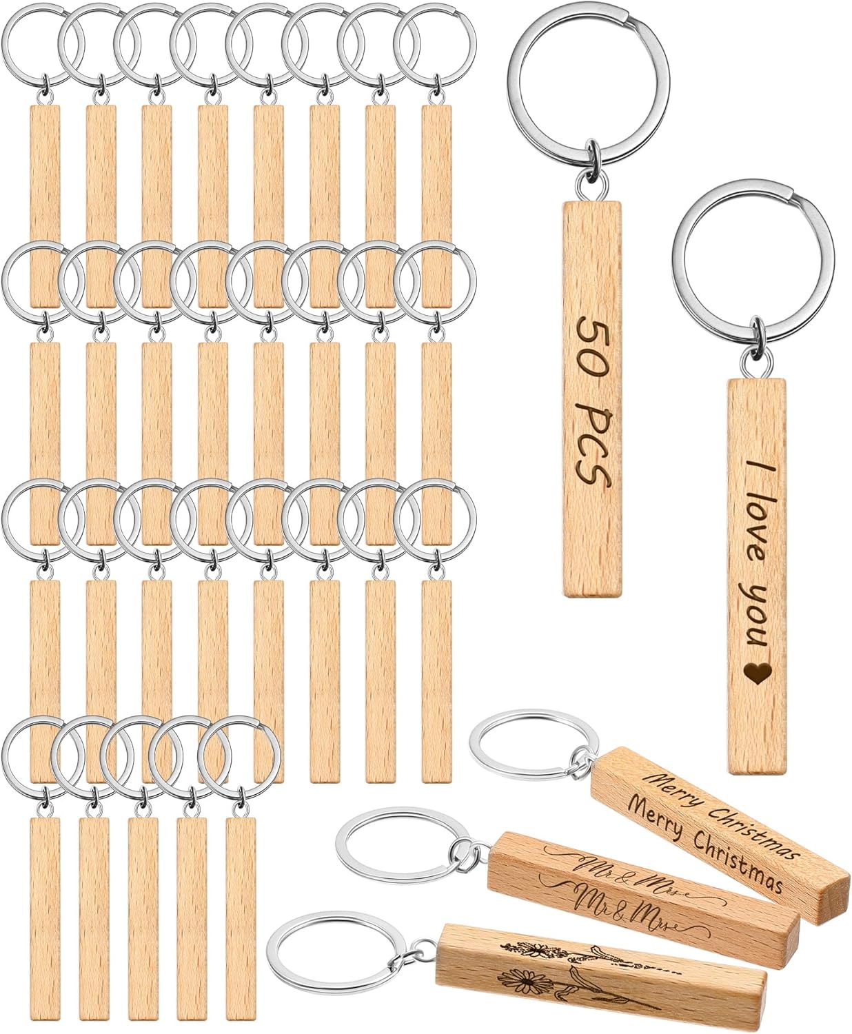 Package Included: 50 wooden blank keychains with a metal ring; This affordable pack let you get a value product without compromising the quality and craftsmanship for your crafting and gifting needs