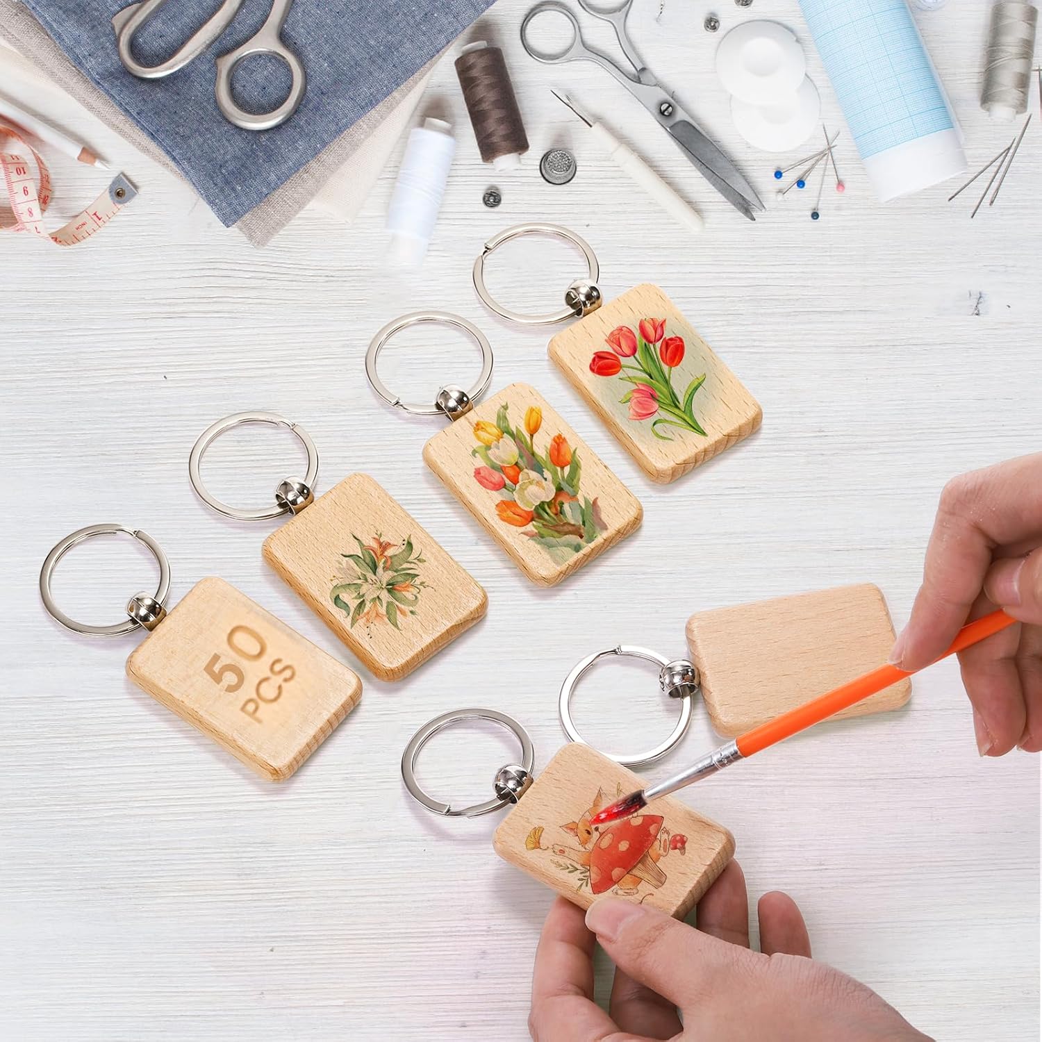 DIY Crafts: Freely DIY your own key chains in different methods, such as wood burning, laser engraving, wood carving, painting and so on.